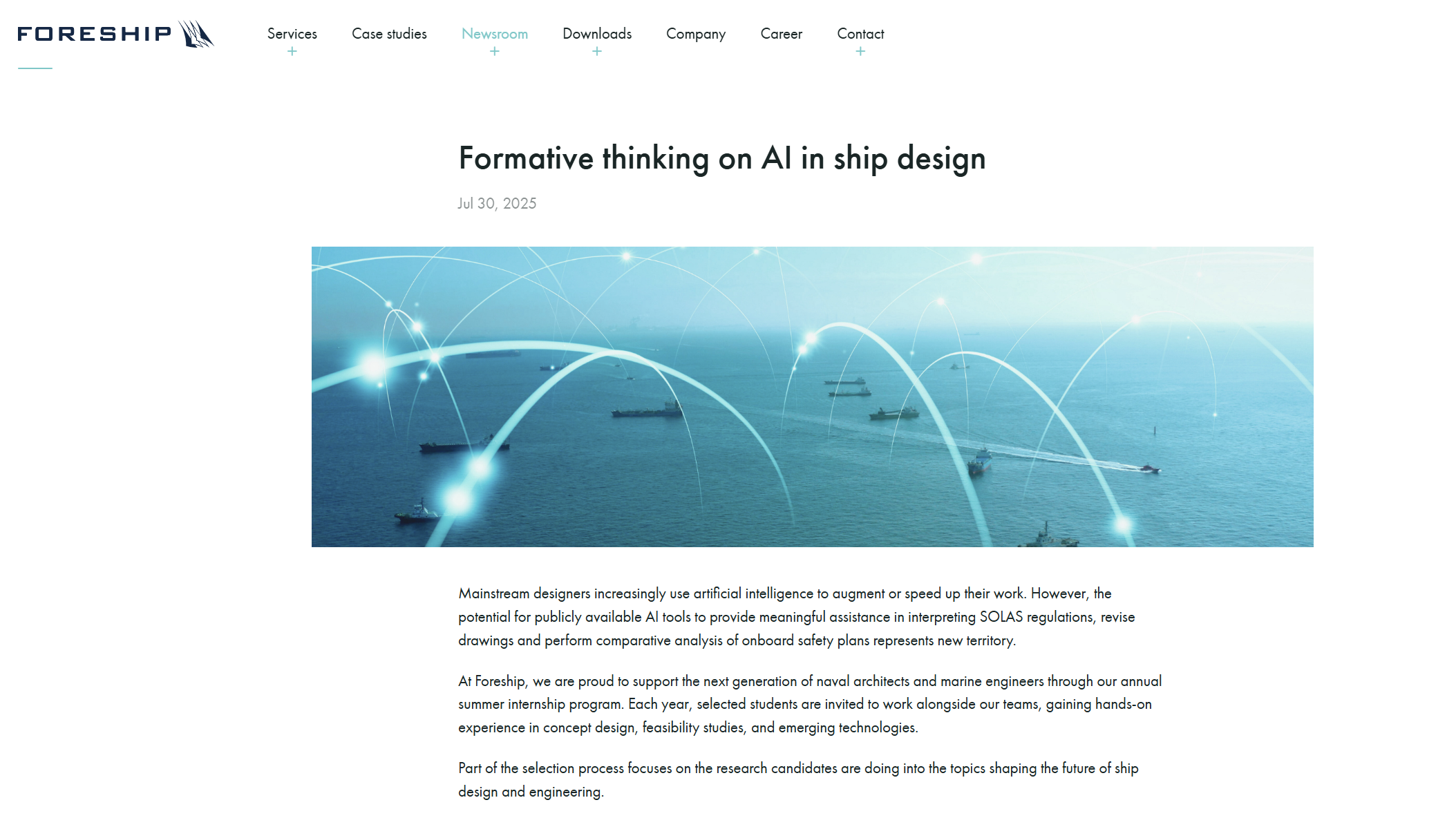 At Foreship, we are proud to support the next generation of naval architects and marine engineers through our annual summer internship program. Each year, selected students are invited to work alongside our teams, gaining hands-on experience in concept design, feasibility studies, and emerging technologies.